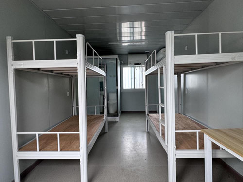公寓內(nèi)設(shè)集宿區(qū)和生活服務(wù)配套區(qū),集宿區(qū)有14個(gè)管理單元,每個(gè)管理單元有20個(gè)房間,其中有1間洗衣房(兼開(kāi)水房),每個(gè)房間可住4人,均配置獨(dú)立衛(wèi)生間,兩張高低床,空調(diào)和熱水器等設(shè)施。