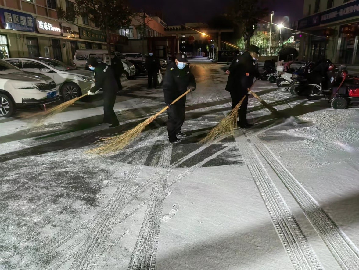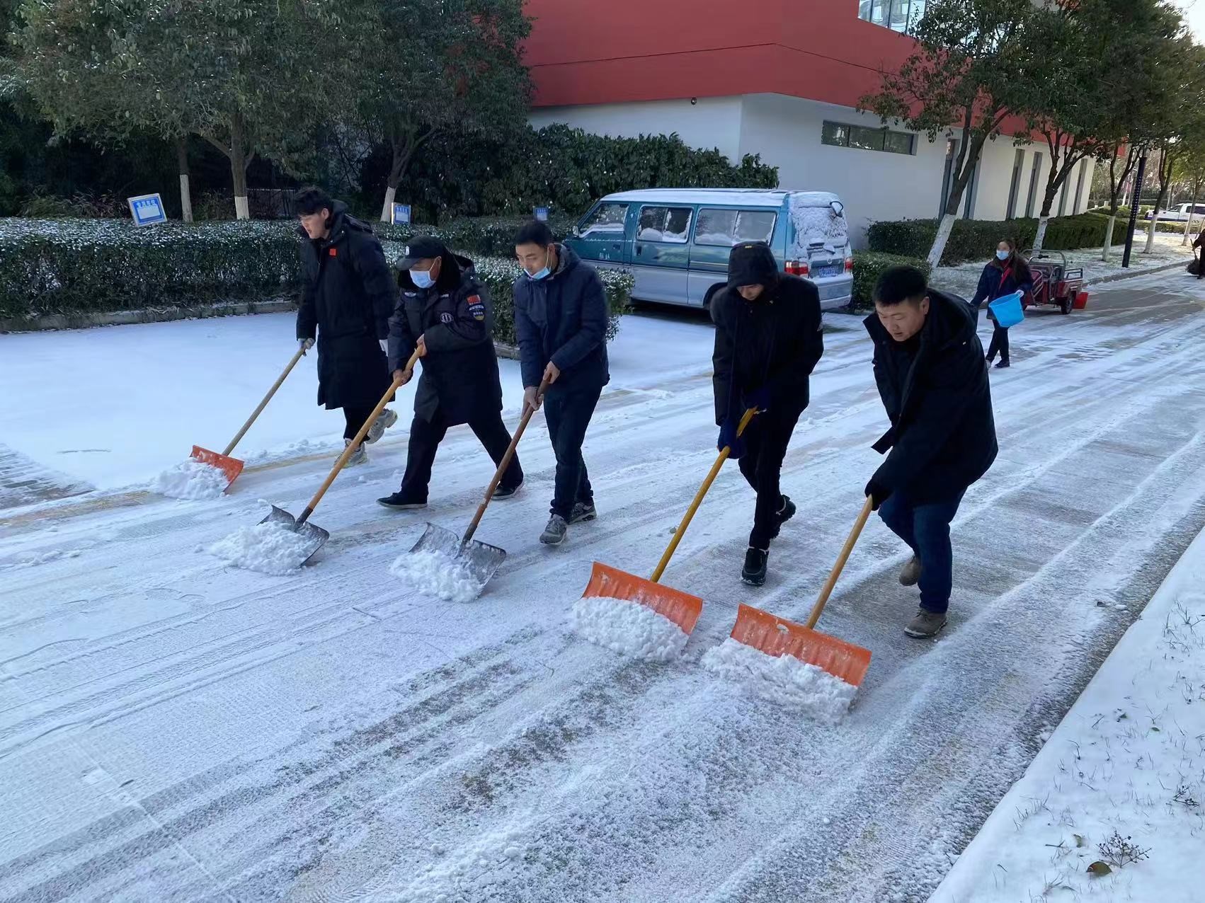 由于夜間雪情,道路積雪結(jié)冰,14日夜間,公司啟動(dòng)應(yīng)急預(yù)案,調(diào)集現(xiàn)場人員,利用掃把、鐵鍬針對各道口、坡道及主要行人路段開展作業(yè),確保各項(xiàng)目道路通行順暢。