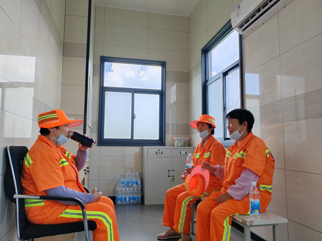 “清涼驛站”全開(kāi)放,避暑納涼有去處。配有空調(diào)、防暑降溫藥品、飲用水的31座公共廁所的休息室、管理間全部對(duì)外開(kāi)放,工人作業(yè)間歇,可以隨時(shí)到“驛站”避暑納涼,讓一線(xiàn)工人在酷暑中享受一絲清涼。