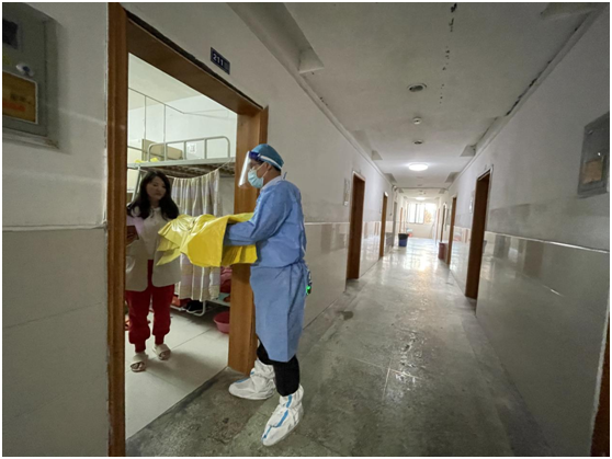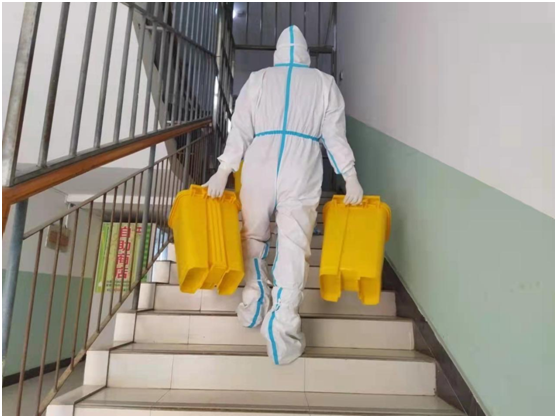 我需要兩個垃圾袋,我需要口罩,我需要……3000余名員工需求保障,他們“有求必應(yīng),有需必達(dá)”,成了園區(qū)公舍里的“宅急送”。他們每天爬樓上下,為每個房間送上垃圾袋,及時清理生活垃圾,每天微信步數(shù)都在20000以上。