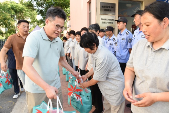 入伏以來,宿遷持續(xù)高溫晴熱天氣,給堅守一線崗位的勞動者帶來不小挑戰(zhàn)。為有效落實防暑降溫措施,切實保障一線員工身體健康與作業(yè)安全,7月24日,建發(fā)公司組織開展了一線員工高溫慰問活動。公司副總經(jīng)理倪松、相關(guān)部門負(fù)責(zé)人參加了慰問。
