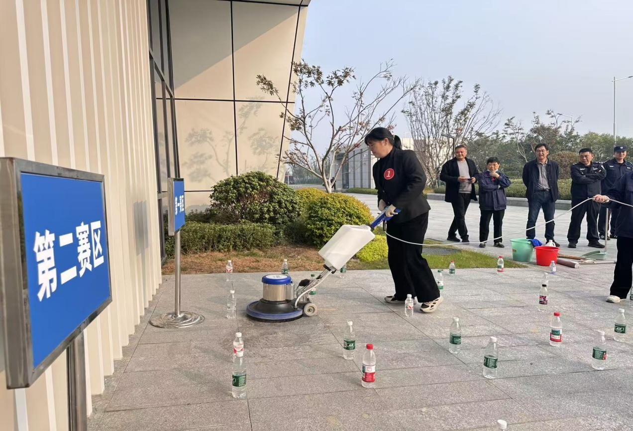 本次比賽共設(shè)定清潔機(jī)械操作、玻璃清潔、電梯清潔等三個項(xiàng)目。比賽中,參賽選手精神飽滿,全力以赴,展現(xiàn)嫻熟的操作技能。經(jīng)過近1個小時的激烈競爭,來自工業(yè)坊項(xiàng)目劉曉玲、和青年公寓項(xiàng)目駱翠娟、王月花分別獲得機(jī)械操作比賽、電梯清潔、玻璃清潔技能比賽第一名。