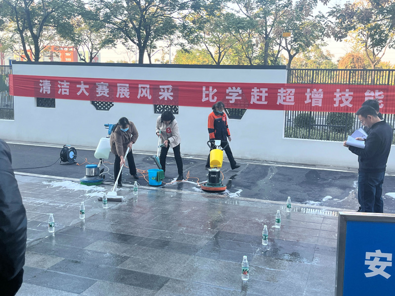 此次大賽分理論知識和操作技能兩部分。理論知識主要考核選手對專業(yè)理論知識的掌握程度;技能實(shí)操則從清潔機(jī)械操作、玻璃清潔等方面進(jìn)行現(xiàn)場考核。